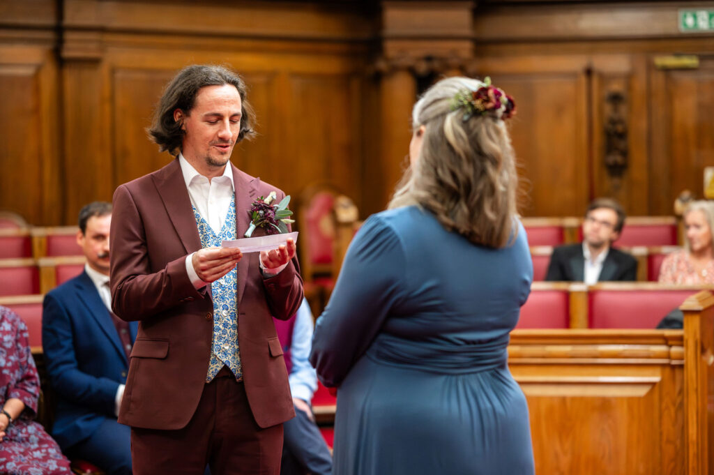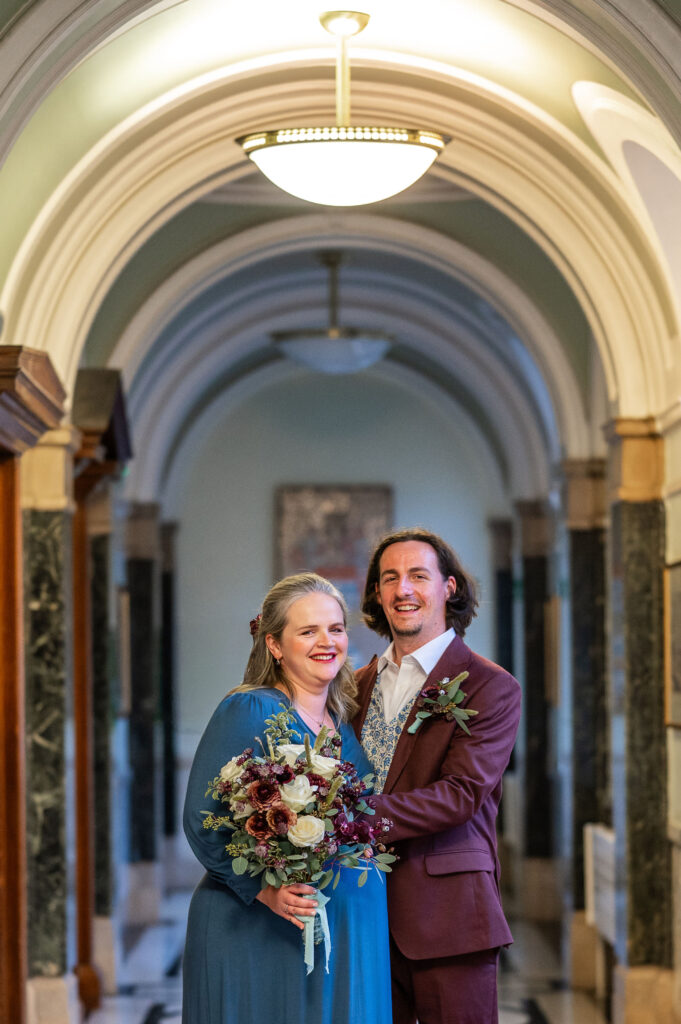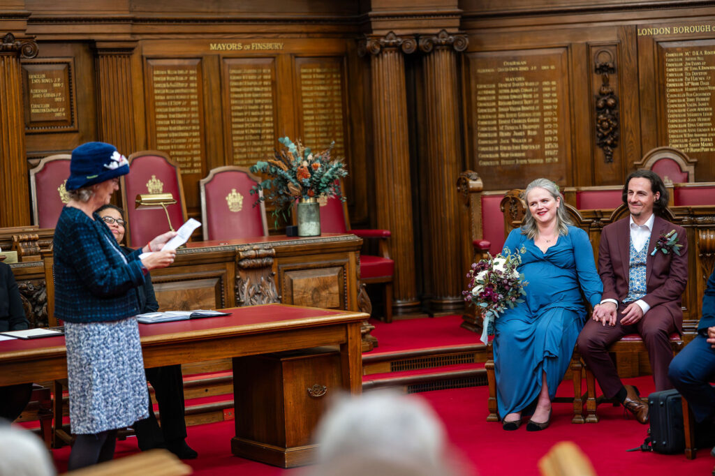 Most Islington Town Hall micro weddings are fully covered in 2 hours. This is usually enough time for guest arrivals, the ceremony in the Council Chamber, family group photos, couple portraits inside the Town Hall, and a confetti exit on the steps outside. If you want to extend your package to cover a pub reception afterwards, my 4 hour package might be perfect for you.