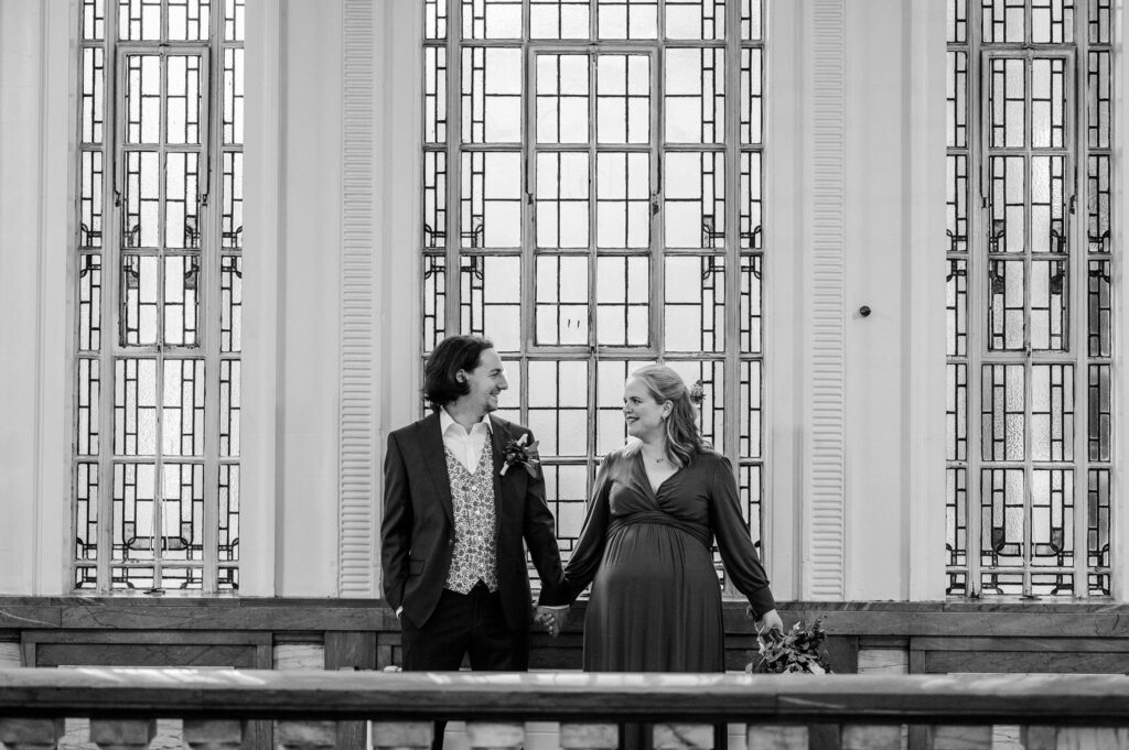 Some of the best photo spots at Islington Town Hall include the marble corridors, staircases, and nearby windows with awesome natural light. These indoor locations are ideal for couple portraits, and work well in both summer and winter, so even if it’s dark or raining, you’ve got some great photos in the bag!